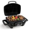 This portable gas BBQ grill packs serious cooking power in a compact package. The 285 square inch cooking surface will allow you to grill up to 20 hamburgers at once. while the easy carry handles let you take it with you wherever you go. When you arrive at your cooking destination simply place the PRO285 on a flat. stable surface. light it with the JETFIRE™ ignition system. and you’re ready to bring the party to you. The sleek all black finish is accented with chrome details that really make this grill stand out from the pack.