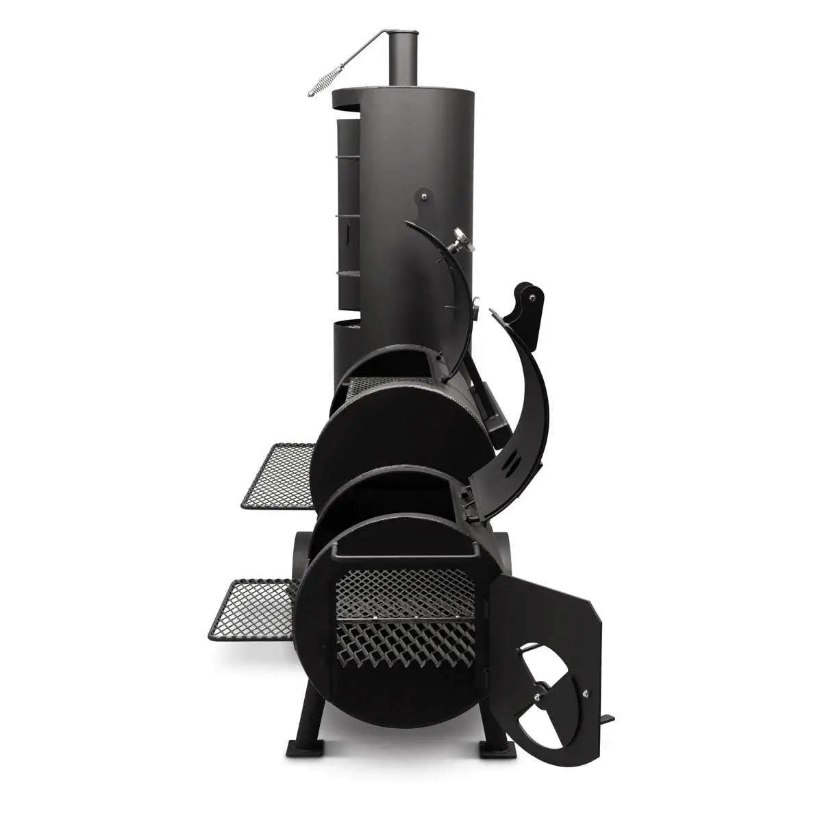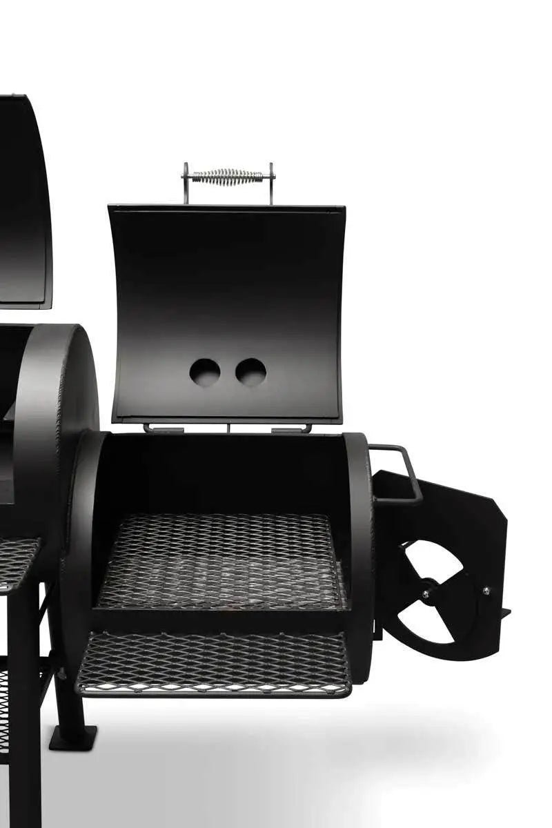 - Removable cooking grates in the firebox and cooking chambers