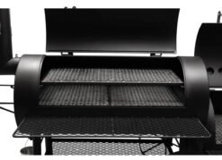 Equipped with a spacious warming rack and multiple cooking grates. the smoker offers versatility and efficiency. It’s classic offset firebox design ensures even heat distribution. resulting in perfectly smoked food with that signature flavor and texture.