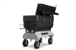 Front and center is the dual stack airflow system. giving you superior draft control and effortless zoned cooking to this 24 x 48 flat top charcoal grill. The cook body has been re-engineered for added rigidity and consistent performance. and the layout now reverses easily for left- or right-hand cooking. Increased use of bolt-on components boosts serviceability and longevity. while a redesigned charcoal basket and all-new bottom shelf storage refine day-to-day usability.