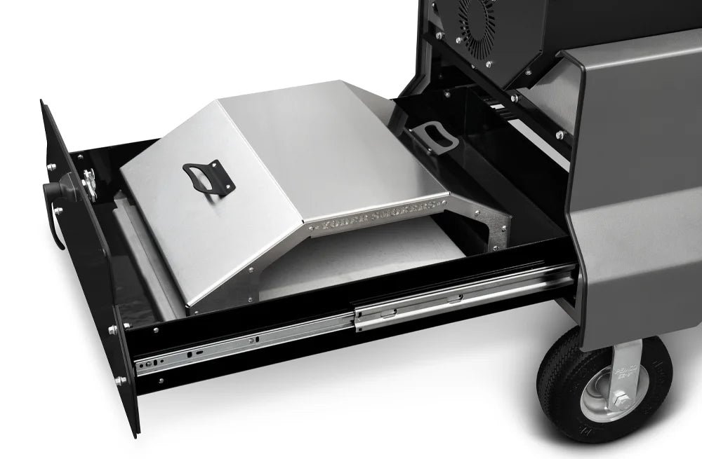 Now. with the integrated storage drawer. this grill and cart combination sets a new standard for convenience. delivering not only cooking power but also a streamlined and efficient grilling experience. Mounted on heavy-duty slides. the high-capacity drawer has space for pellets. tools. rubs. and Yoder Smokers accessories. By keeping your favorite accessories at hand. you save time and energy during every cook.